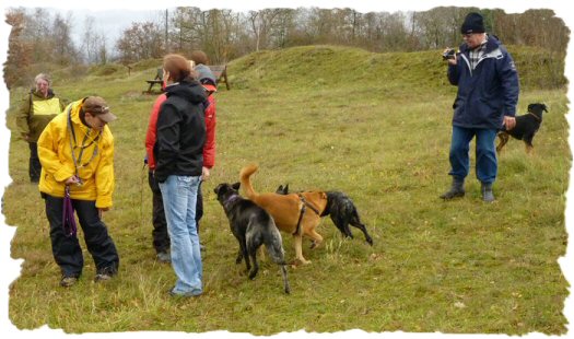Herdertreffen 13/14 November 2010 Die " Mystery Devils " und die zukünftigen " of cracy stripes " hatten zu einem kleinen Herderfamilientreffen eingeladen. Da die Welpen vom H-Wurf noch sehr jung sind hatten wir nur die aus der " näheren Umgebung " gefragt, ob sie Lust hätten mit zu machen. Da es die ganze Woche vorher wie aus Eimern geschüttet hat, haben wir uns umso mehr gefreut, dass alle den Mut hatten zu kommen. Aber wie es so ist, wenn Mystery Engels reisen, um 10:30 hörte es auf mit regnen und wir konnten eine schöne Runde laufen. Menschen und Hunde machen Bekanntschaft. |