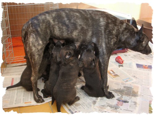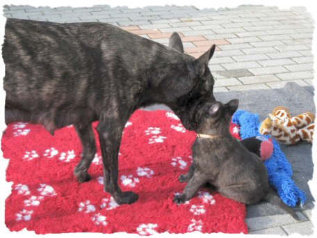 Aika hilft beim Erziehen und will immer mit den Welpen spielen. |