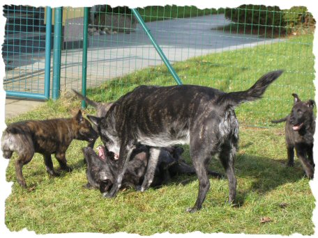 2009 Das Jahr 2009 haben die Kleinen sehr durchtrieben angefangen und es musste ein Erziehungsmorgen eingelegt werden. Bei strahlendem Sonnenschein wurde dann von Aika und Darcy den Kleinen einmal das Benehmen in dieser Welt beigebracht. Aika als geduldige Oma hat doch mit aller Konsequenz klare Schranken gesetzt.